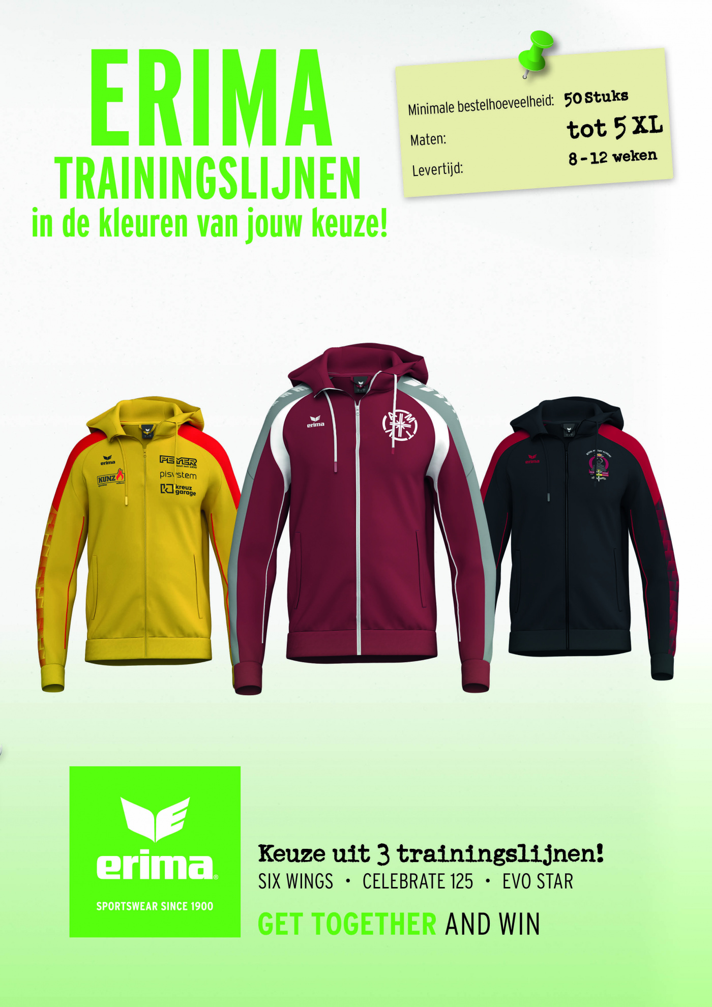 KEUZE UIT 3 TRAININGSLIJNEN IN DE KLEUREN VAN JOUW KEUZE!