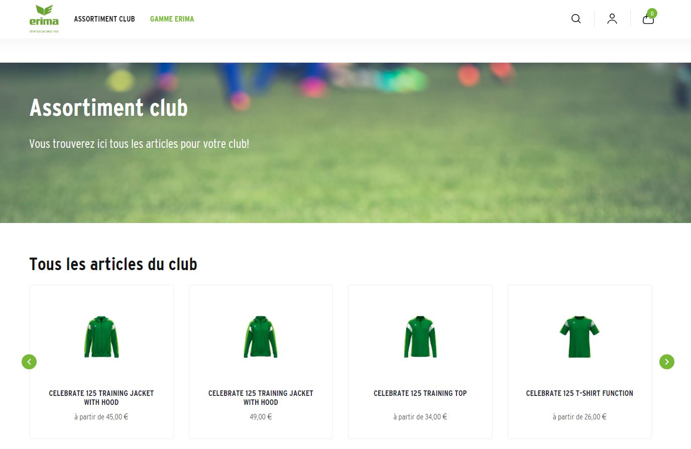 100% sport d'équipe - 100% service! Vous pouvez créer votre propre boutique de club par votre revendeur ERIMA ou contactez-nous directement.