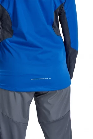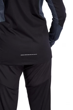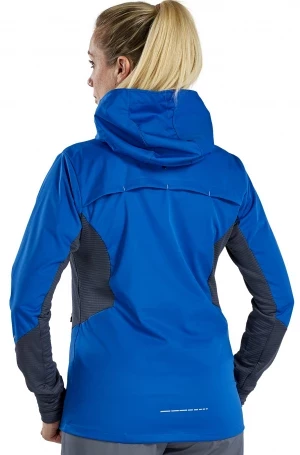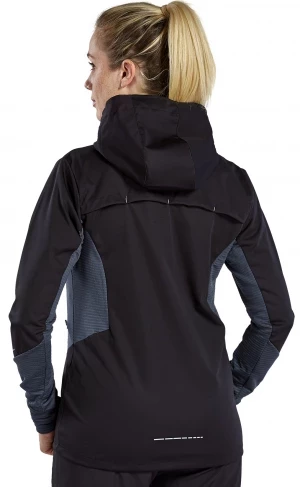 Het hardloopjack is gemaakt van een zeer licht, waterafstotend functioneel materiaal en is daarom de perfecte partner voor je hardloopsessie bij slecht weer. Dankzij de functionele eigenschappen voelt u zich comfortabel. Dit wordt aangevuld door de ventilatieopening aan de achterkant. Het jack is uitgerust met vele praktische extra's die het een echte must-have maken: het is voorzien van zijzakken met rits, een hoge kraag met capuchon en een duimgat op de mouwzoom aan beide zijden. Ook de reflecterende elementen zijn super praktisch en zorgen voor een betere zichtbaarheid.