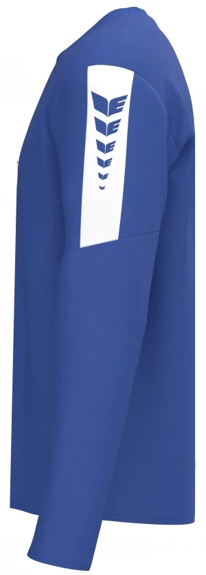 Het INTRO sweatshirt combineert sportief design met duurzame functionaliteit. Het slijtvaste functionele materiaal van 100% gerecycled polyester zorgt voor maximaal comfort - of je nu traint, opwarmt of in je vrije tijd bent. Het contrastkleurige inzetstuk met ERIMA Wings-print op de mouwen geeft de look een dynamische touch en zorgt voor een moderne uitstraling. De geborduurde ERIMA wings benadrukken het hoogwaardige karakter. Met zijn rechte snit en klassieke ronde halslijn biedt het shirt een comfortabele pasvorm en een tijdloze stijl. Duurzaam, functioneel en sportief - voor iedereen die waarde hecht aan stijl en milieubewustzijn.