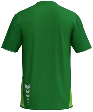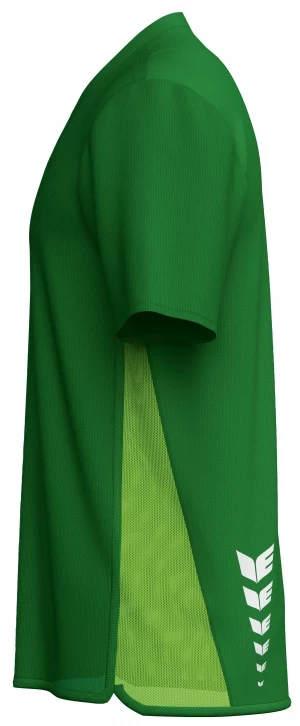 De ERIMA T&F WINGS T-shirt function is gemaakt voor topprestaties. Het functionele materiaal is gemaakt van 82% gerecycled polyester en combineert duurzaamheid met hoogwaardige functionaliteit. Het houdt je aangenaam droog, terwijl het innovatieve cooling yarn je huidtemperatuur reguleert: Vocht wordt snel van de huid afgevoerd, verdeeld en verdampt, waardoor een verkoelend effect ontstaat - ideaal voor intensieve trainingssessies. Platte naden garanderen maximaal comfort zonder wrijving en de opvallende ERIMA Wings-print op de rug maakt de sportieve look helemaal af.