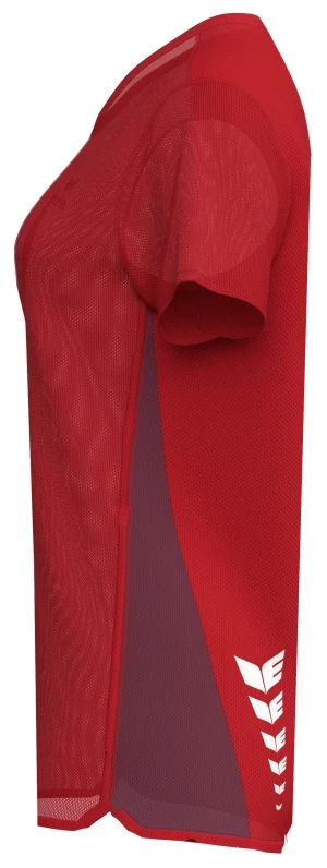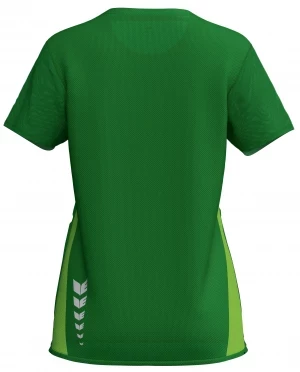 De ERIMA T-Shirt T&F WINGS is gemaakt voor topprestaties. Het functionele materiaal is gemaakt van 82% gerecycled polyester en combineert duurzaamheid met hoogwaardige functionaliteit. Het houdt je aangenaam droog, terwijl de innovatieve Cooling yarn je huidtemperatuur reguleert: Vocht wordt snel van de huid afgevoerd, verdeeld en verdampt, waardoor een verkoelend effect ontstaat - ideaal voor intensieve trainingssessies. Platte naden garanderen maximaal comfort zonder schuren en de opvallende ERIMA Wings-print op de rug maakt de sportieve look helemaal af.