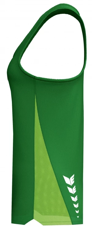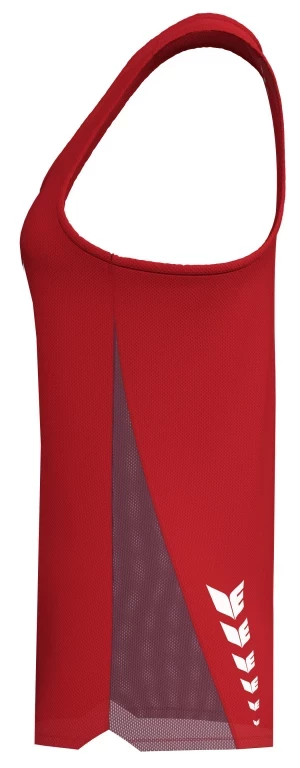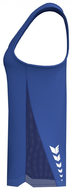 Het ERIMA T&F WINGS singlet is speciaal ontwikkeld voor topprestaties en maakt indruk met zijn lichte, sneldrogende functionele polyester, dat voor 82% bestaat uit gerecycled materiaal. Het combineert daarom duurzaamheid met een uitstekend ademend vermogen. Dankzij het innovatieve cooling yarn wordt je huidtemperatuur tijdens het sporten actief gereguleerd. De binnenste garens voeren vocht direct af van de huid, verdelen het gelijkmatig en zorgen voor een snelle verdamping en een aangenaam verkoelend effect. Platte naden bieden optimaal comfort, zelfs tijdens intensieve inspanningen, terwijl de opvallende ERIMA WINGS-print op de rug zorgt voor een sportieve, dynamische look.
